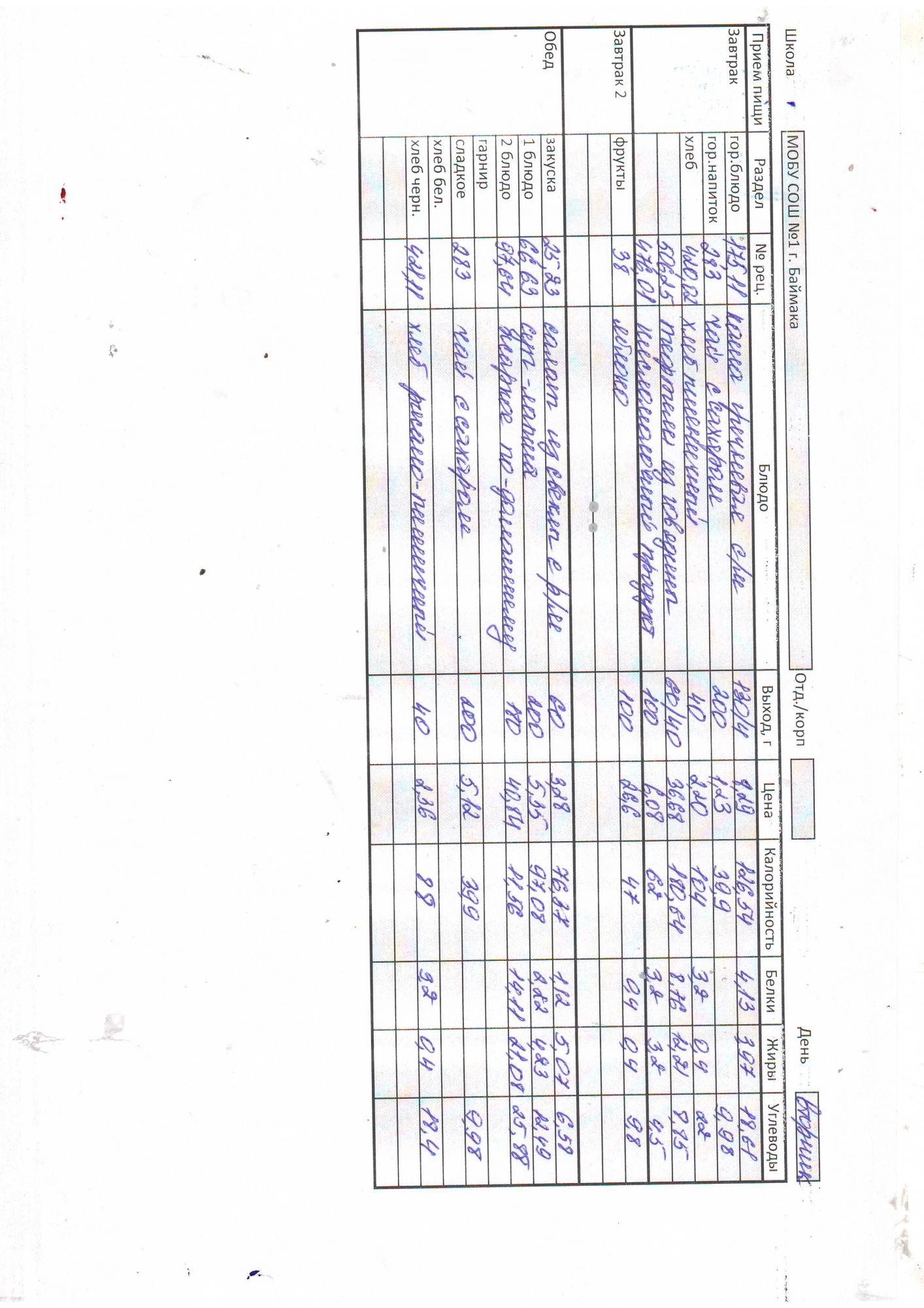 Контрольное блюдо