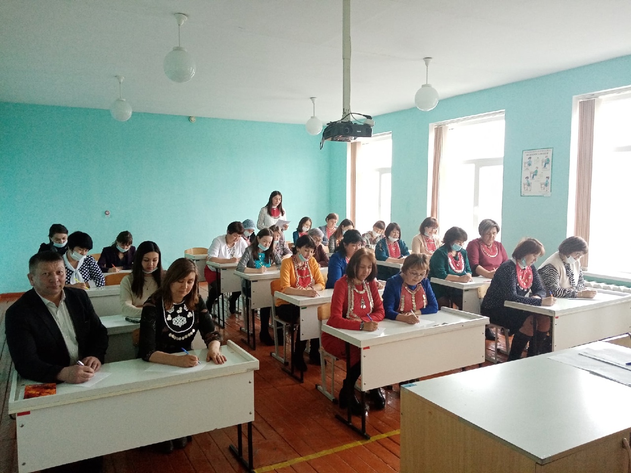 уҡытыусыларҙы мәктәптә "Ерем,илем, телем" йыры ҡаршы алды. Тәүҙә